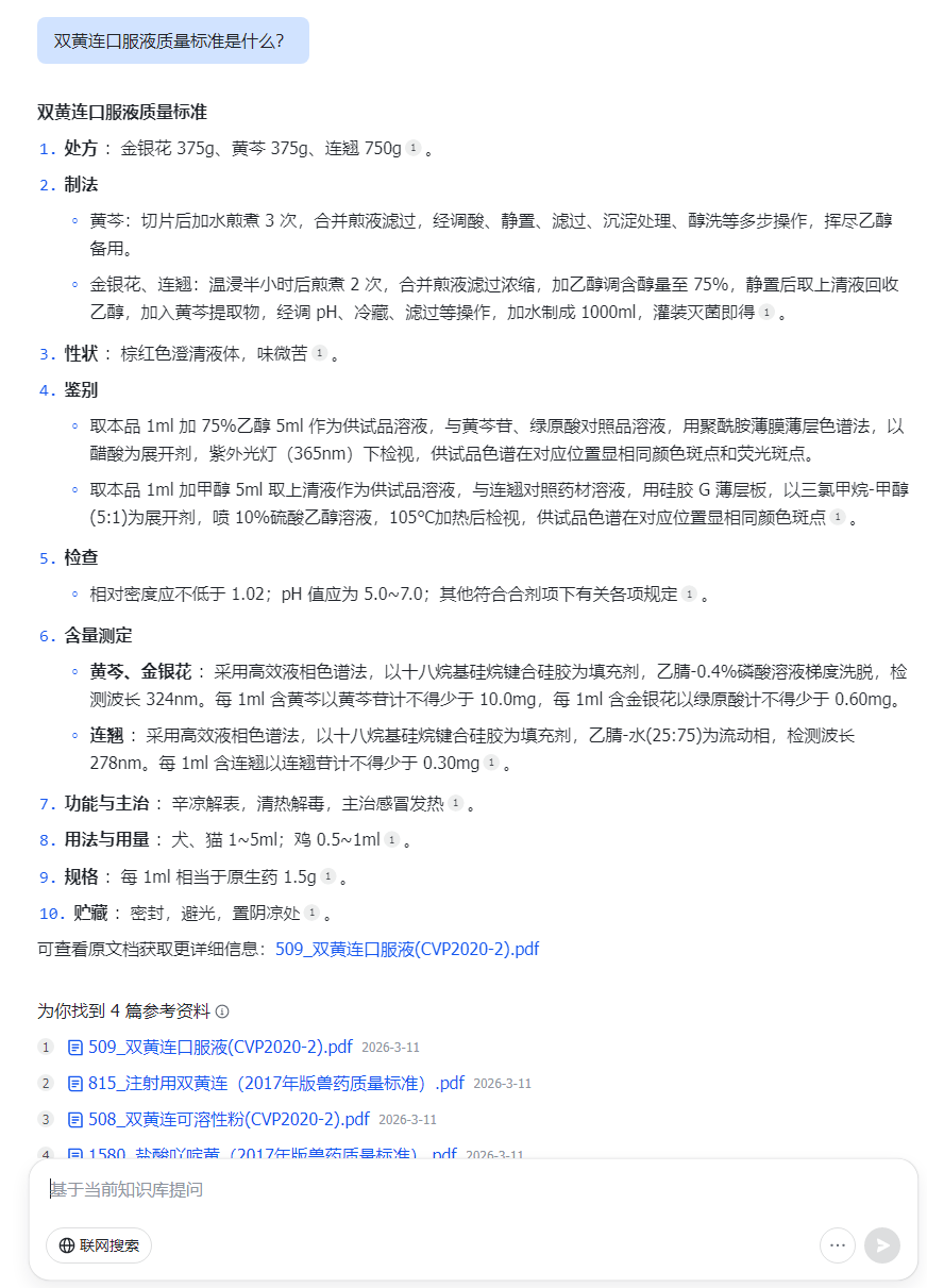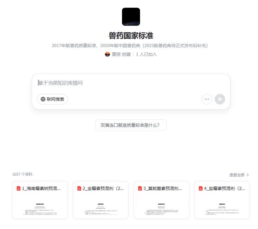 | 主题 : 兽药国家标准知识库,借助飞书知识问答可实现AI快速查询 |
